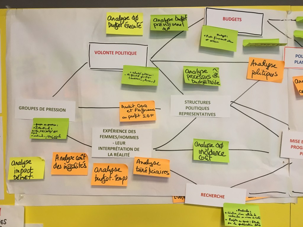 L’égalité femmes-hommes est un écosystème. Tout est lié : les enjeux du contexte, les différents groupes d’acteurs et actrices, les visions politiques (y compris budgétaires), les pratiques organisationnelles et l’opérationnalisation des politiques, programmes et projets.